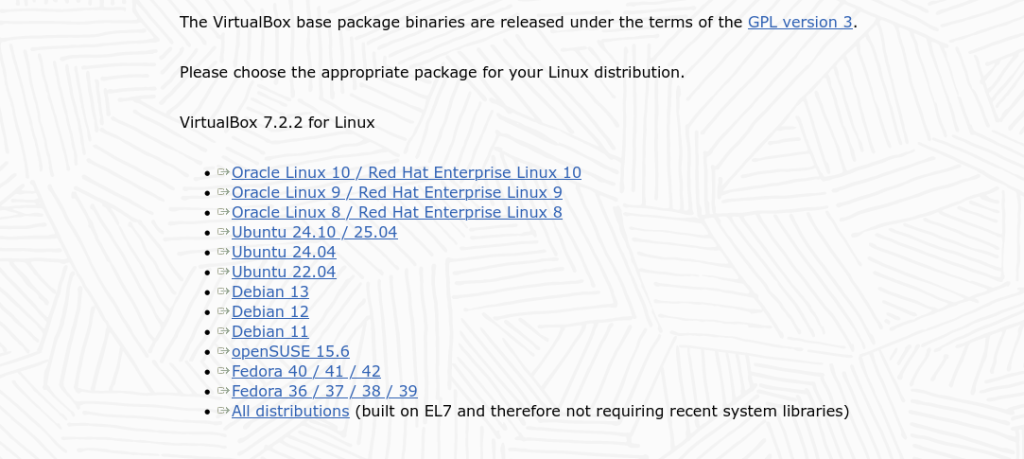 Passos a seguir: Buscar en el navegador “Downloads Virtual Box” Entrem en la primera opció Escollim el nostre sistema operatiu Seleccionem la versió que te el nostre sistema operatiu Aqui tenim el Virtual box