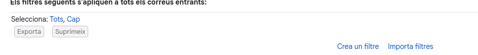 Per començar has d’anar a “configuració” i fer click a “Filtres i adreçes bloqueades” Després li donem a “Crear un filtre” i per acabar ho rellenem