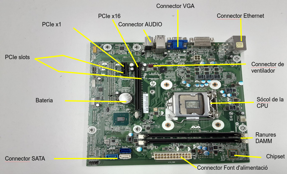 - PCI slots: Serveixen per instal·lar una gran varietat de targetes d’expansió