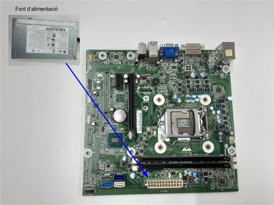 - Connector D’alimentació: És on l’ordinador rep energia elèctrica procedent de la font d’alimentació