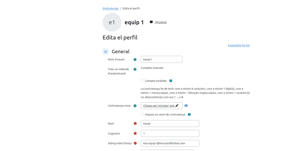 Nom d’usuari: equip1